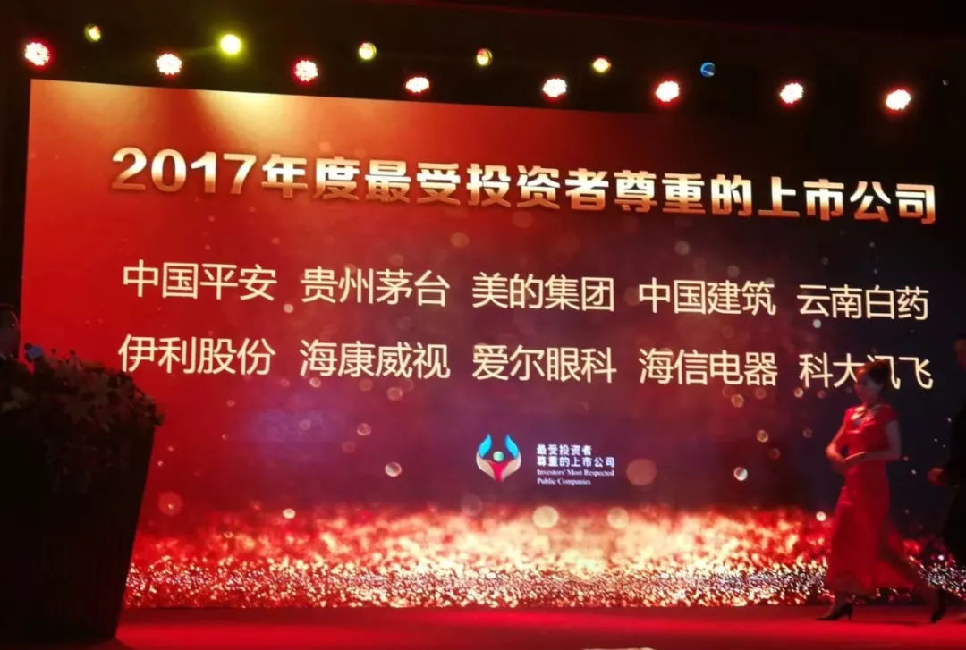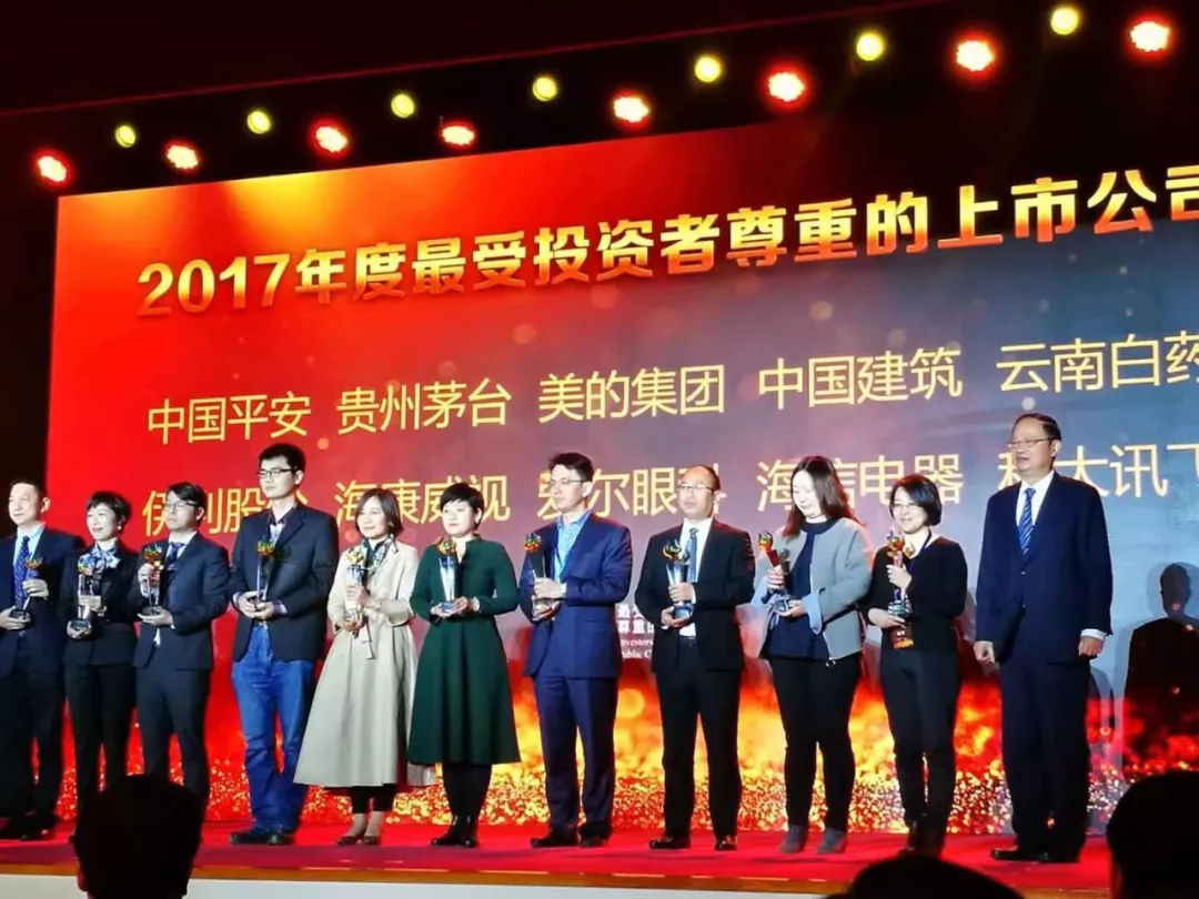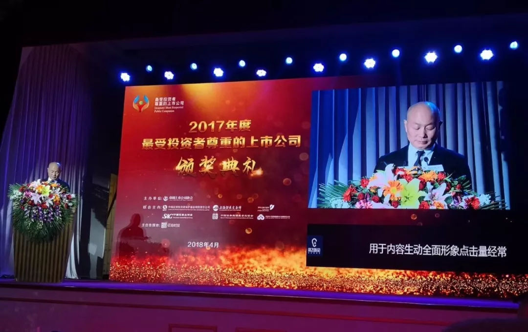 4月8日,由中国上市公司协会联合中国证券投资者保护基金公司、上海证券交易所、深圳证券交易所、中国证券业协会、中国证券投资基金业协会、中证中小投资者服务中心有限责任公司共同主办,《证券时报》作为活动主合作媒体的“2017年度最受投资者尊重的上市公司评选”结果正式揭晓,并在北京隆重举行了颁奖典礼。